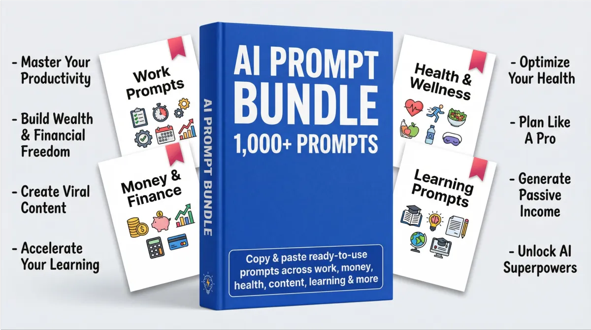 That's why I built The AI Prompt Bundle to give you 1,000+ proven inputs across every area of life so you can get real, usable output from AI every single time you open it.